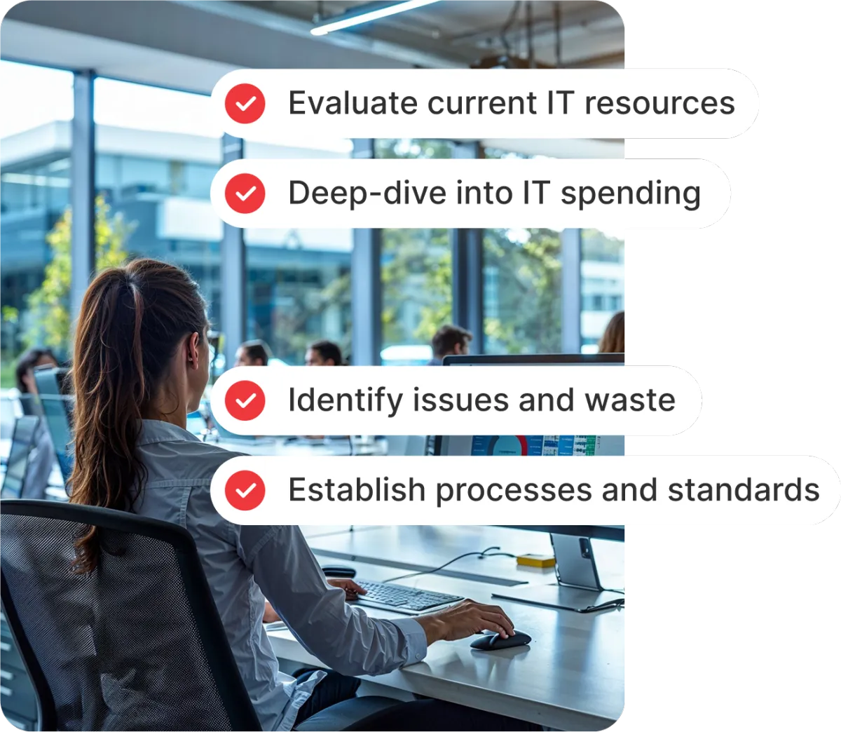The process of taking stock of this requires multiple conversations across your organization. As a result of these conversations, you will be able to identify existing IT bottlenecks, inefficiencies, department-specific pain points, and other factors that could be draining your budget.